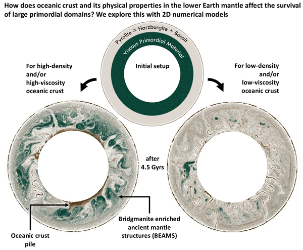 The lower mantle extends from 660–2890 km depth, making up > 50 % of the Earth’s volume. Its composition and structure, however, remain poorly understood. In this study, we investigate several hypotheses with computer simulations of mantle convection that include different materials: recycled, dense rocks and ancient, strong rocks. We propose a new integrated style of mantle convection including