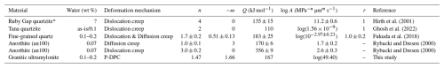 Table 3Flow law parameters of studies we used to compare rheological behavior. n= stress exponent; grain size exponent; r= fugacity exponent (for water) (see Eq. 4).