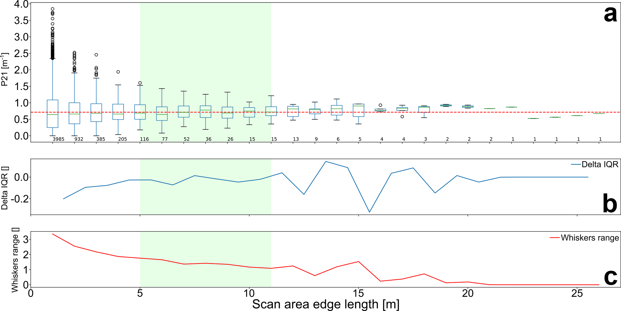 It is important to remember that facets can be interpolated only on fully exposed planar structures, therefore they represent only the part of the fracture plane that shows a morphological expression. Moreover, based on the calibrated parameters there is the possibility that the interpolation of an exposed surface will result in a combination of facets, and not a single one. All of this to say that data like faces height and surface extension can be useful but should be handled with care if trying to obtain volumetric parameters (P30 or P32) or height distributions.