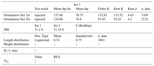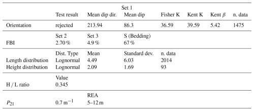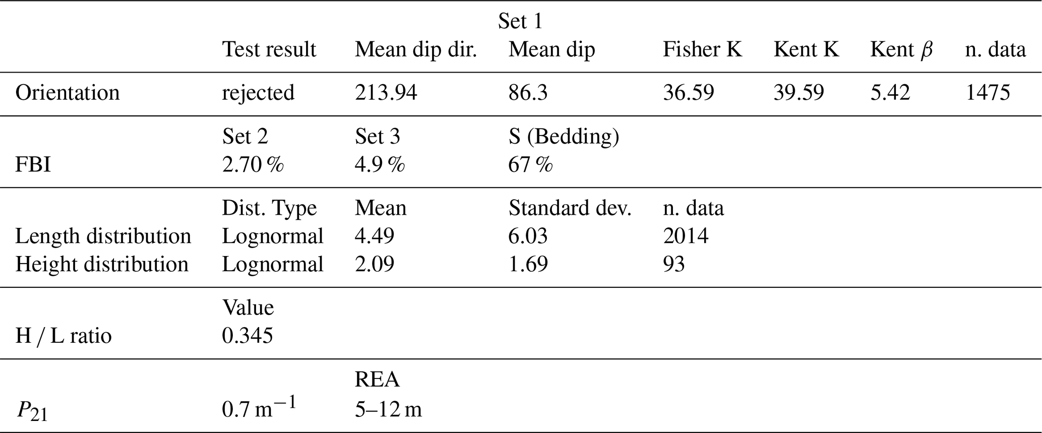 - Summary of the results: fracture network characteristics at the Pontrelli quarry