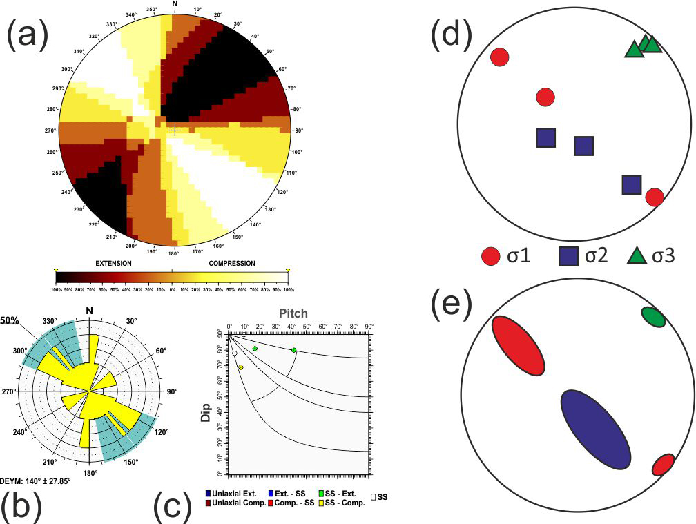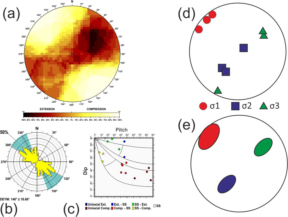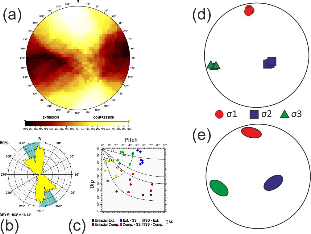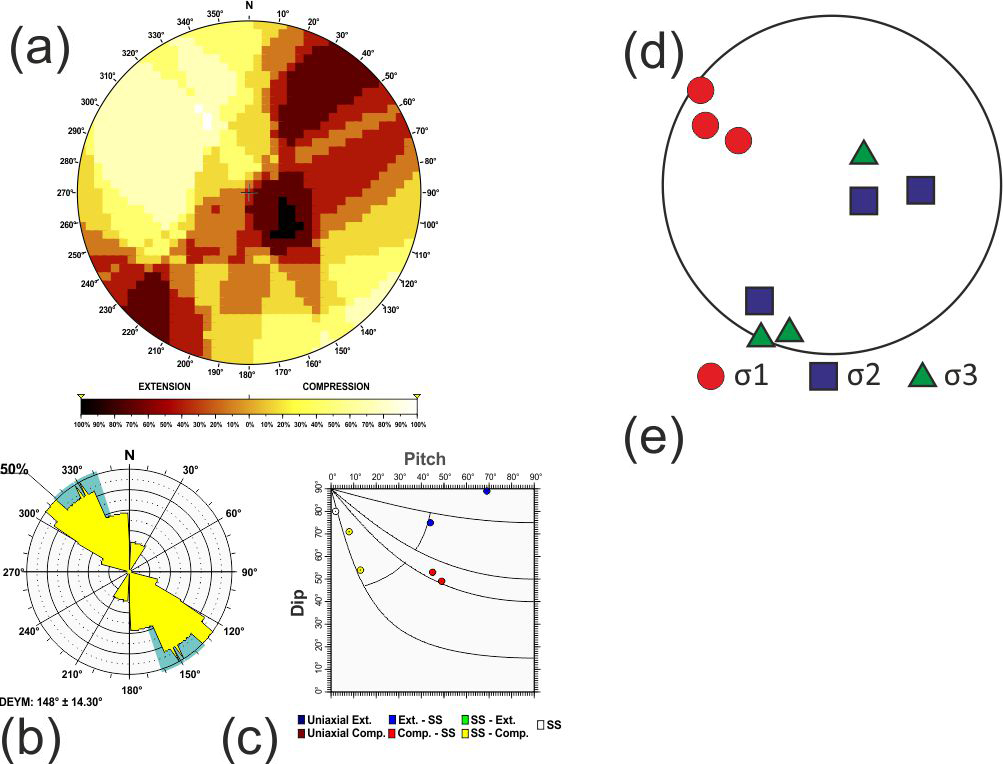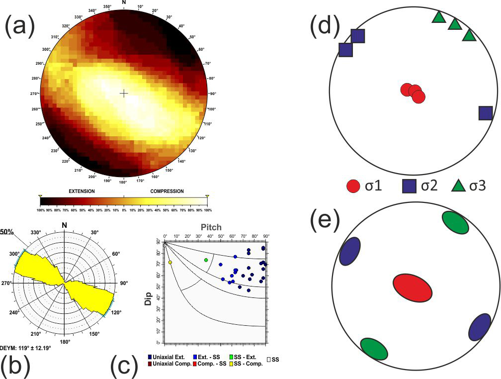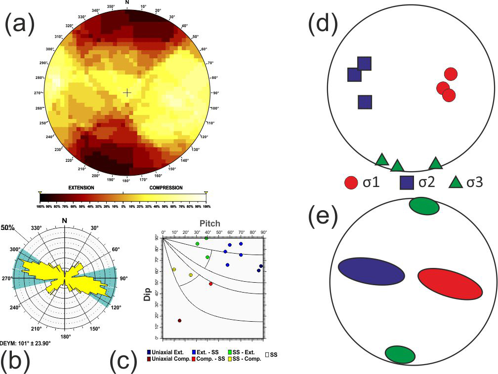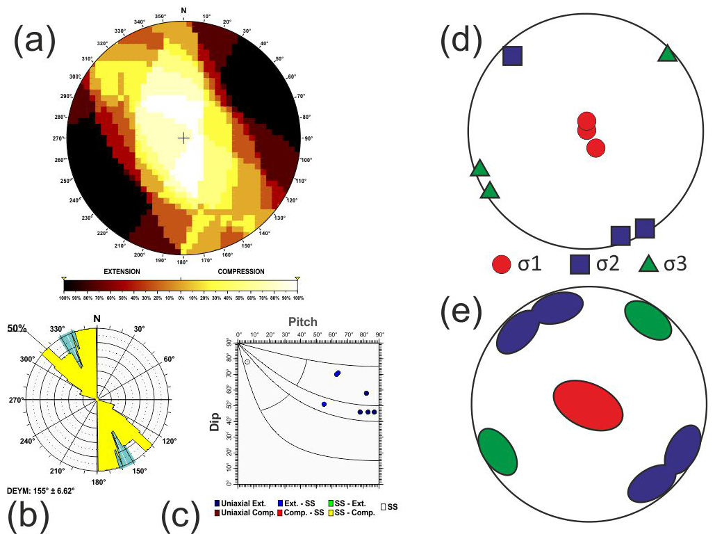 Additionally, based on the relationship between D and P proposed by de Vicente (1988), when the nodal plane coincides with the character of the focal mechanism, frictional energy is dissipated more efficiently. Therefore, the selected plane can be effectively utilised in stress inversion methods that rely on fault plane orientations and their associated slip directions (Angelier and Mechler, 1977). Hence, the quality of the stress inversion results is improved compared to those obtained using both planes (neo-formed and reactivated) (Michael, 1987; de Vicente, 1988; Giner-Robles et al., 2006).