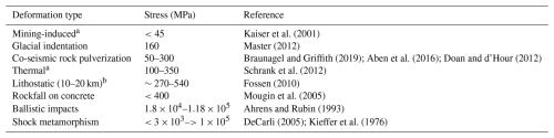 Table 1Stress ranges for various types of deformation.