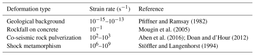 Doan, M.-L. and d'Hour, V.: Effect of initial damage on rock pulverization along faults, J. Struct. Geol., 45, 113–124, https://doi.org/10.1016/j.jsg.2012.05.006, 2012. a, b, c, d, e, f