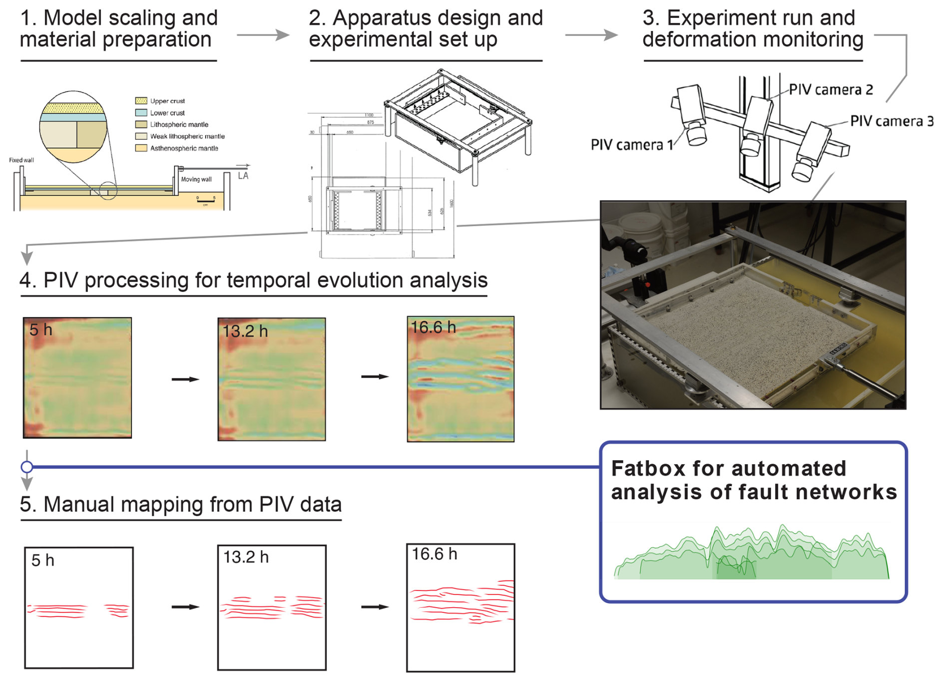 Figure 6Integration of Fatbox in an analogue modelling workflow. The program replaces manual mapping and automatically analyzes the fault geometry and network evolution.